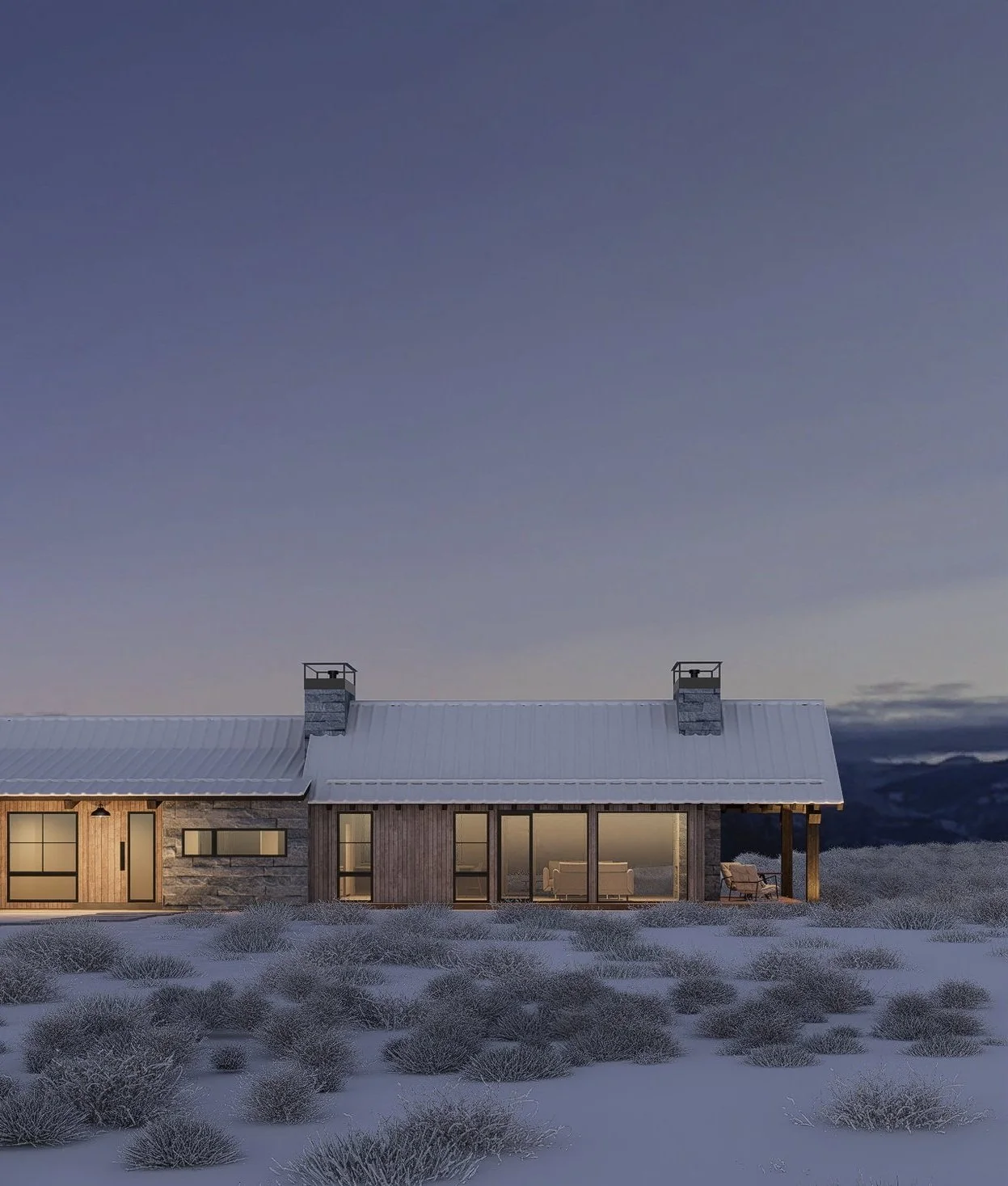 Located on a 10-acre site near the Wyoming–Idaho border, this project sits in a high-alpine steppe environment shaped by climate extremes and wide-open views. A horseshoe of some of the most iconic and rugged peaks in the Rockies surround the site.